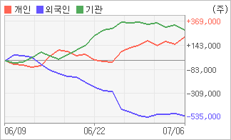 | 기관/개인 순매수, 외국인은 순매도(한달누적) 전일 외국인과 기관이 각각 23,124주, 46,838주를 순매수 했다. 4주간을 기준으로 보면 기관이 방향성있는 매매를 하면서 292,412주를 순매수했고, 개인들도 매수반전의 모습을 보이며 225,864주를 순매수했다. 반면 그 동안 외국인은 매도 우위를 지속하면서 518,276주를 순매도했다. |
