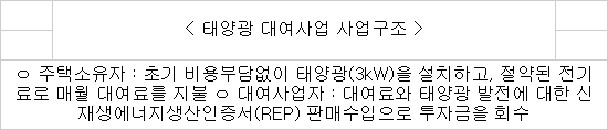태양광 대여사업은 사업자가 소비자 주택에 3㎾ 규모 태양광 설비를 설치해 주고 대여료와 이곳에서 발생하는 신재생에너지 발전 실적(REP)으로 수익을 창출하는 게 골자다. 한 달 전기요금이 10만원가량 나오던 주택에 태양광 설비를 설치해 전기요금을 2만원으로 줄이고 7만원은 대여료로 지급해 소비자 편익을 거두는 식이다.