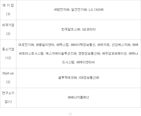 <투자협약 20개 기업 현황(자료:한국전력)>