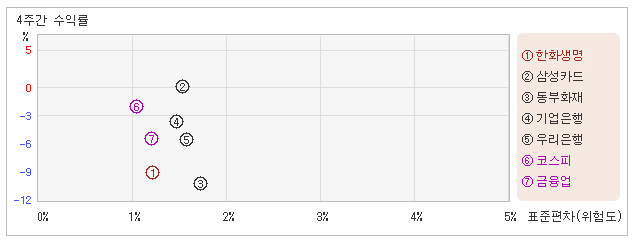 | 동부화재 | 1.7% | -13.0% | -7.6 |