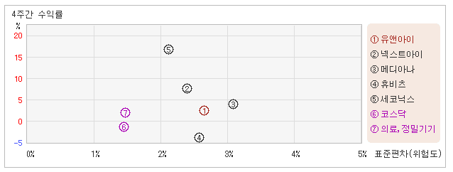 | 휴비츠 | 2.5% | -4.2% | -1.6 |