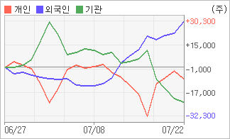 | 기관과 개인은 순매도, 외국인은 순매수(한달누적) 기관이 4일연속 주식을 팔고 있는 반면 외국인은 3일연속 주식을 사고 있다. 4주간을 기준으로 보면 외국인이 매매관점을 매도에서 매수로 전환하면서 30,010주를 순매수한 반면, 기관은 순매수에서 순매도로 반전되면서 22,555주를 순매도했고, 개인들도 매도 우위로 반전되면서 7,455주를 순매도한 것으로 집계됐다. |