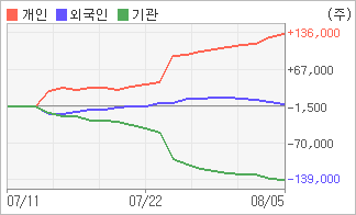 | 외국인/개인 순매수, 기관은 순매도(한달누적) 기관과 외국인의 동반 순매도가 눈에 띈다. 어제까지 기관은 18일 연속 동종목을 매도했고, 외국인도 5일 연속 순매도로 대응하고 있다. 4주간을 기준으로 보면 외국인이 매수 우위를 유지하면서 3,668주를 순매수했고, 개인들도 순매수량을 늘리며 135,013주를 순매수했다. 하지만 기관은 매도 관점으로 접근하면서 138,681주를 순매도했다. |