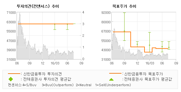 | 의견제시일자 | 투자의견 | 목표가격 | | 20160808 | 매수(유지) | 44,000 | | 20160712 | 매수(유지) | 44,000 | | 20160516 | 매수(유지) | 44,000 | | 20160418 | 매수(유지) | 45,000 | | 20160222 | 매수(유지) | 39,000 |