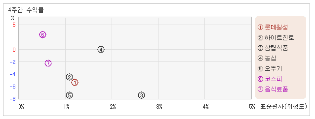 | 롯데칠성 | 1.2% | -6.7% | -5.6 |