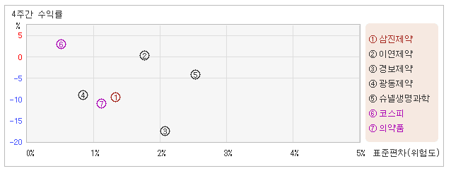 | 삼진제약 | 1.3% | -9.6% | -7.4 |