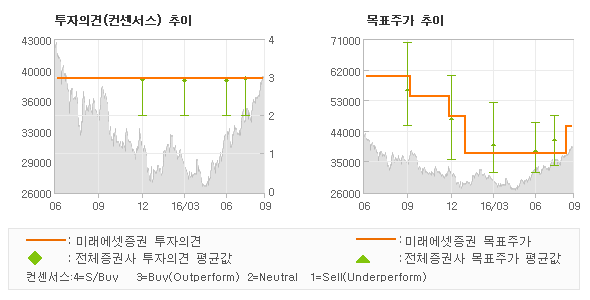 | 의견제시일자 | 증권사 | 투자의견 | 목표가 | | 20160909 | 미래에셋증권 | 매수 | 45,000 | | 20160908 | 유진투자증권 | 매수(유지) | 48,000 | | 20160908 | 대신증권 | 매수(유지) | 40,000 | | 20160907 | IBK투자증권 | 매수(유지) | 48,000 |