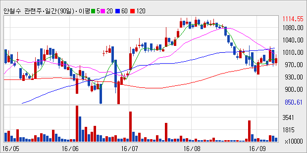 | 안철수 관련주(지수:995.63 전일비:▲2.19%) |