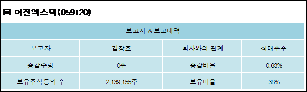 다음은 아진엑스텍의 지분 변동 내역과 보유 내역이다.