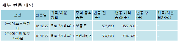 다음은 에스맥의 지분 변동 내역과 보유 내역이다.