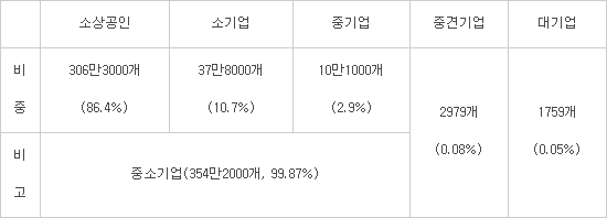 국내 기업 현황(자료:중소기업청·통계청, 2014년 전국사업체조사 기준)