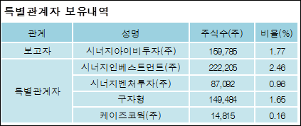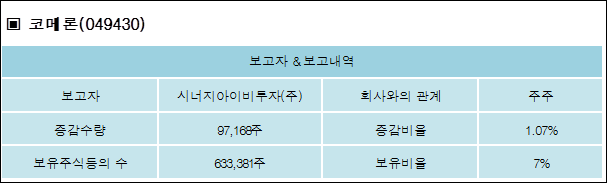 [로봇뉴스][코메론 지분 변동] 시너지아이비투자(주) 외 4명 1.07%p 증가, 7% 보유