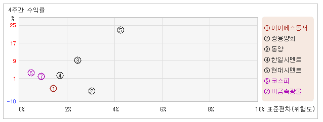 | 아이에스동서 | 쌍용양회 | 현대시멘트 | 한일시멘트 | 동양 | |
