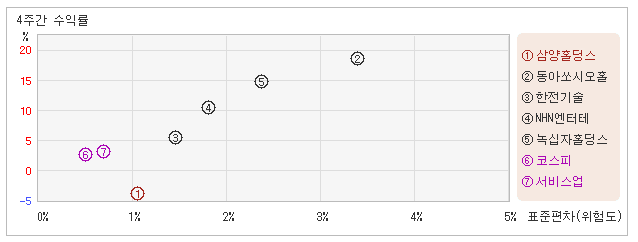 | 삼양홀딩스 | 1.0% | -4.1% | -4.0 |