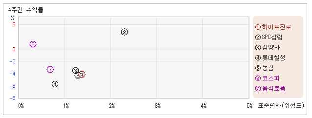 | 하이트진로 | 1.3% | -5.2% | -4.0 |