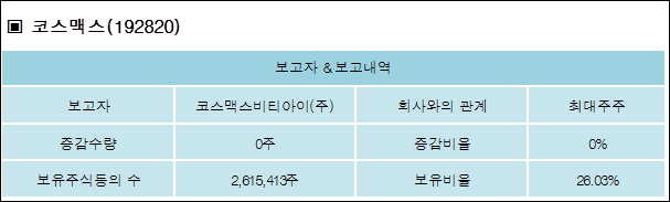 다음은 코스맥스의 지분 변동 내역과 보유 내역이다.