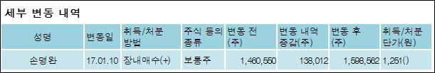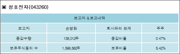 다음은 성호전자의 지분 변동 내역과 보유 내역이다.