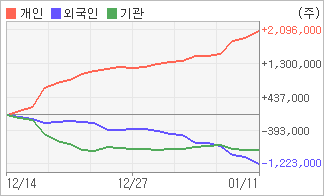 외국인과 기관은 순매도, 개인은 순매수(한달누적)