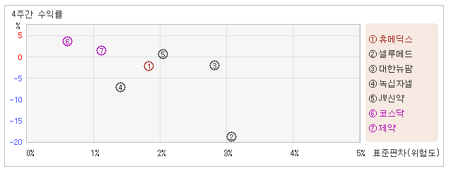 | 녹십자셀 | 1.4% | -7.2% | -5.1 |