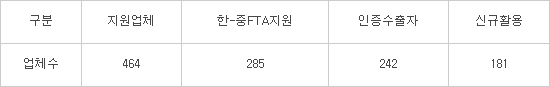OK FTA 컨설팅 수혜기업은 2015년보다 31.4% 늘어난 464개사였다. 이중 61.4%인 285개가 한중 FTA 활용을 지원받았다.