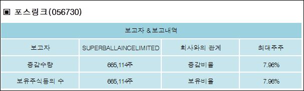 다음은 포스링크의 지분 변동 내역과 보유 내역이다.