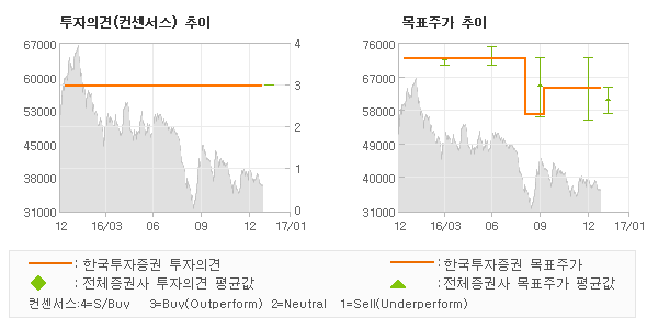 | 의견제시일자 | 투자의견 | 목표가격 | | 20170120 | 매수(유지) | 64,000 | | 20161010 | 매수(유지) | 64,000 | | 20160927 | 매수(유지) | 57,000 | | 20160831 | 매수(유지) | 57,000 | | 20160729 | 매수(유지) | 72,000 |