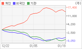 | 외국인과 기관은 순매도, 개인은 순매수(한달누적) 전일 외국인과 기관이 각각 761주, 870주를 순매수 했다. 4주간을 기준으로 보면 외국인이 매도 후 매수의 관점을 보이고 있음에도 불구하고 6,201주를 순매도했고, 기관도 매도 관점으로 접근하면서 7,845주를 순매도했지만, 개인은 오히려 순매수량을 늘리며 14,046주를 순매수했다. |