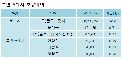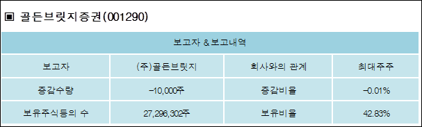 다음은 골든브릿지증권의 지분 변동 내역과 보유 내역이다.