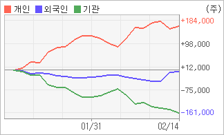 | 외국인과 기관은 순매도, 개인은 순매수(한달누적) 기관이 4일연속 주식을 팔고 있는 반면 외국인은 2일연속 주식을 사고 있다. 4주간을 기준으로 보면 외국인이 매도 후 매수의 관점을 보이고 있음에도 불구하고 4,889주를 순매도했고, 기관도 매도 관점으로 접근하면서 160,975주를 순매도했지만, 개인은 오히려 순매수량을 늘리며 165,864주를 순매수했다. |