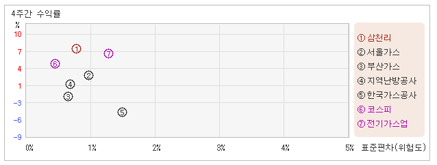 | 삼천리 | 부산가스 | 서울가스 | 지역난방공사 | 한국가스공사 | |