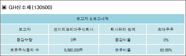 다음은 GH신소재의 지분 변동 내역과 보유 내역이다.