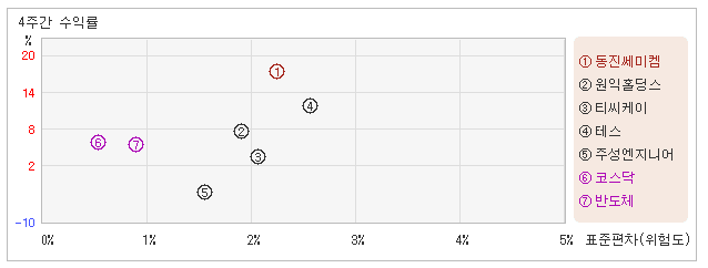 | 동진쎄미켐 | 2.2% | 17.3% | 7.8 |