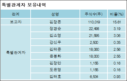 최대주주와 특수관계자의 지분 변동은 주가에 영향을 주는 요인이다. 특히 보유비율을 지속적으로 늘리거나 줄일 경우, 해당종목 투자시 유의할 필요가 있다.