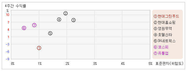 | 현대그린푸드 | 1.0% | -5.2% | -5.1 |