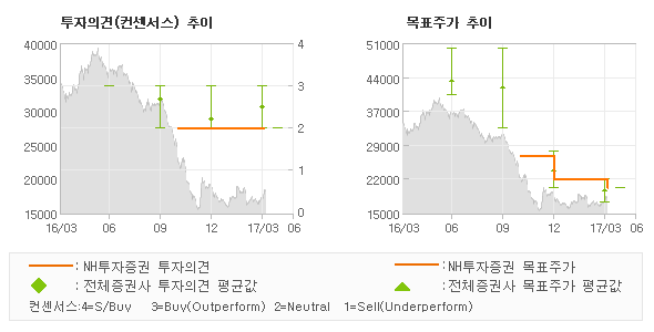 | 의견제시일자 | 투자의견 | 목표가격 | | 20170404 | HOLD(유지) | 20,000 | | 20161228 | HOLD(유지) | 22,000 | | 20161101 | HOLD(신규) | 27,000 |