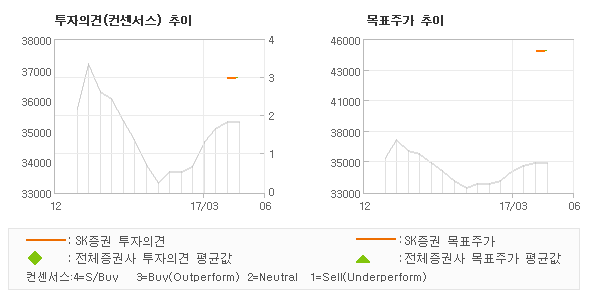 | 의견제시일자 | 증권사 | 투자의견 | 목표가 | | 20170405 | SK증권 | 매수(신규편입) | 45,000 |