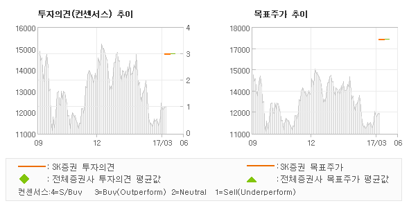 | 의견제시일자 | 증권사 | 투자의견 | 목표가 | | 20170405 | SK증권 | 매수(신규편입) | 17,200 |