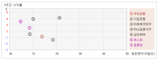| 우리은행 | 1.3% | -1.5% | -1.1 |