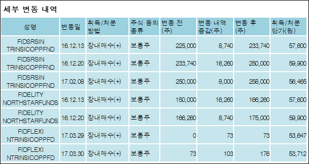 다음은 영원무역홀딩스의 지분 변동 내역과 보유 내역이다.
