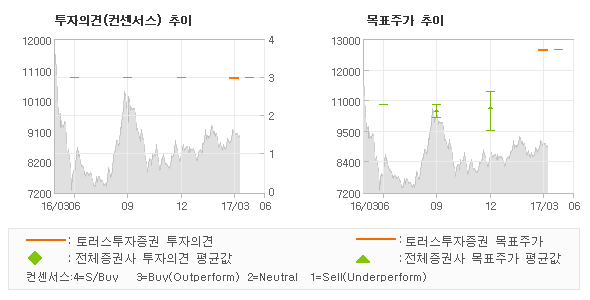 | 의견제시일자 | 투자의견 | 목표가격 | | 20170406 | 매수(유지) | 12,600 | | 20170323 | 매수(유지) | 12,600 |