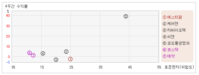 | 차바이오텍 | 1.5% | -3.3% | -2.2 |