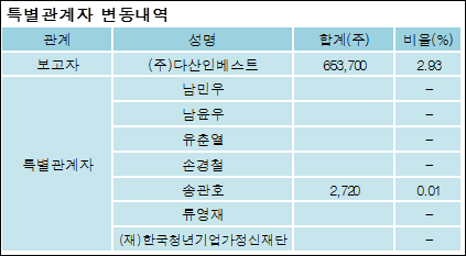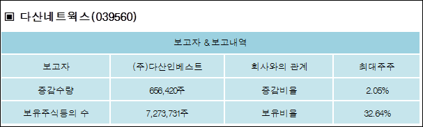 다음은 다산네트웍스의 지분 변동 내역과 보유 내역이다.