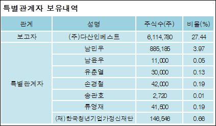 최대주주와 특수관계자의 지분 변동은 주가에 영향을 주는 요인이다. 특히 보유비율을 지속적으로 늘리거나 줄일 경우, 해당종목 투자시 유의할 필요가 있다.