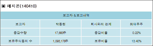 다음은 메지온의 지분 변동 내역과 보유 내역이다.