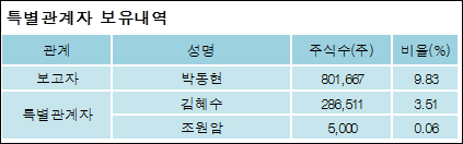 최대주주와 특수관계자의 지분 변동은 주가에 영향을 주는 요인이다. 특히 보유비율을 지속적으로 늘리거나 줄일 경우, 해당종목 투자시 유의할 필요가 있다.