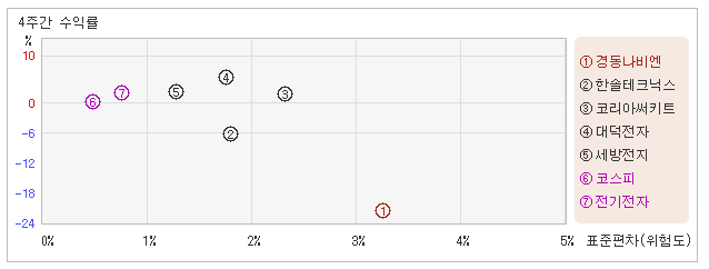 | 경동나비엔 | 3.2% | -23.3% | -7.2 |