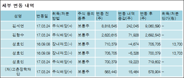 다음은 DRB동일의 지분 변동 내역과 보유 내역이다.