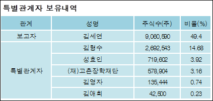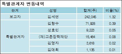최대주주와 특수관계자의 지분 변동은 주가에 영향을 주는 요인이다. 특히 보유비율을 지속적으로 늘리거나 줄일 경우, 해당종목 투자시 유의할 필요가 있다.