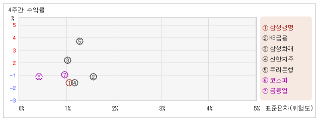 | 삼성생명 | 1.0% | -2.7% | -2.6 |