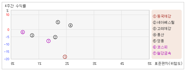 | 고려제강 | 0.7% | -4.1% | -5.8 |